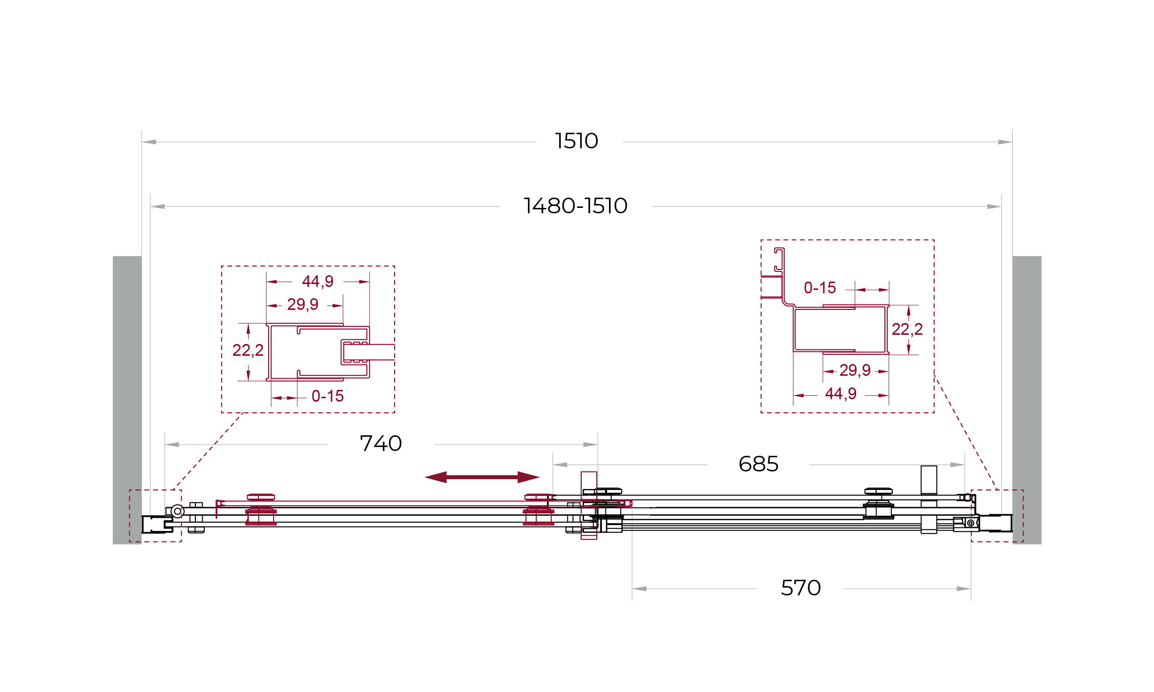—Душевая дверь в нишу BelBagno MARINO-2-BF-1-150-C-GM
