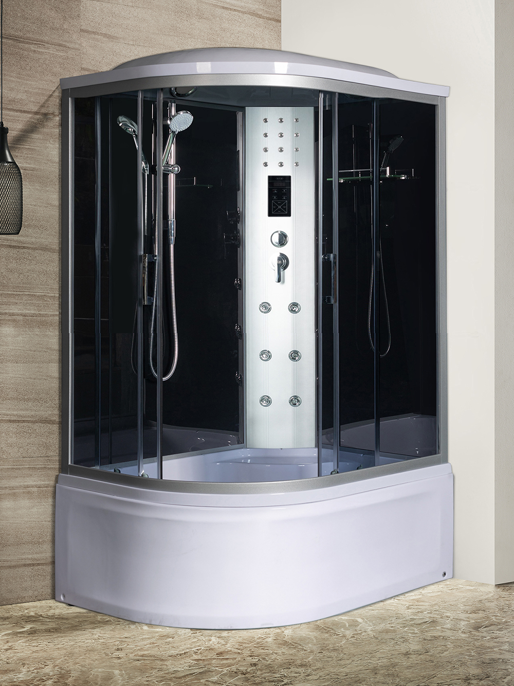 | Комплектация | сиденье||сифон||Вентилятор||смеситель||крыша||поддон WEMOR||полочка||верхний душ||верхний свет||динамик||центральная стойка||пульт управления||радио||г/м форсунки||штанга||ручной душ||телефон |