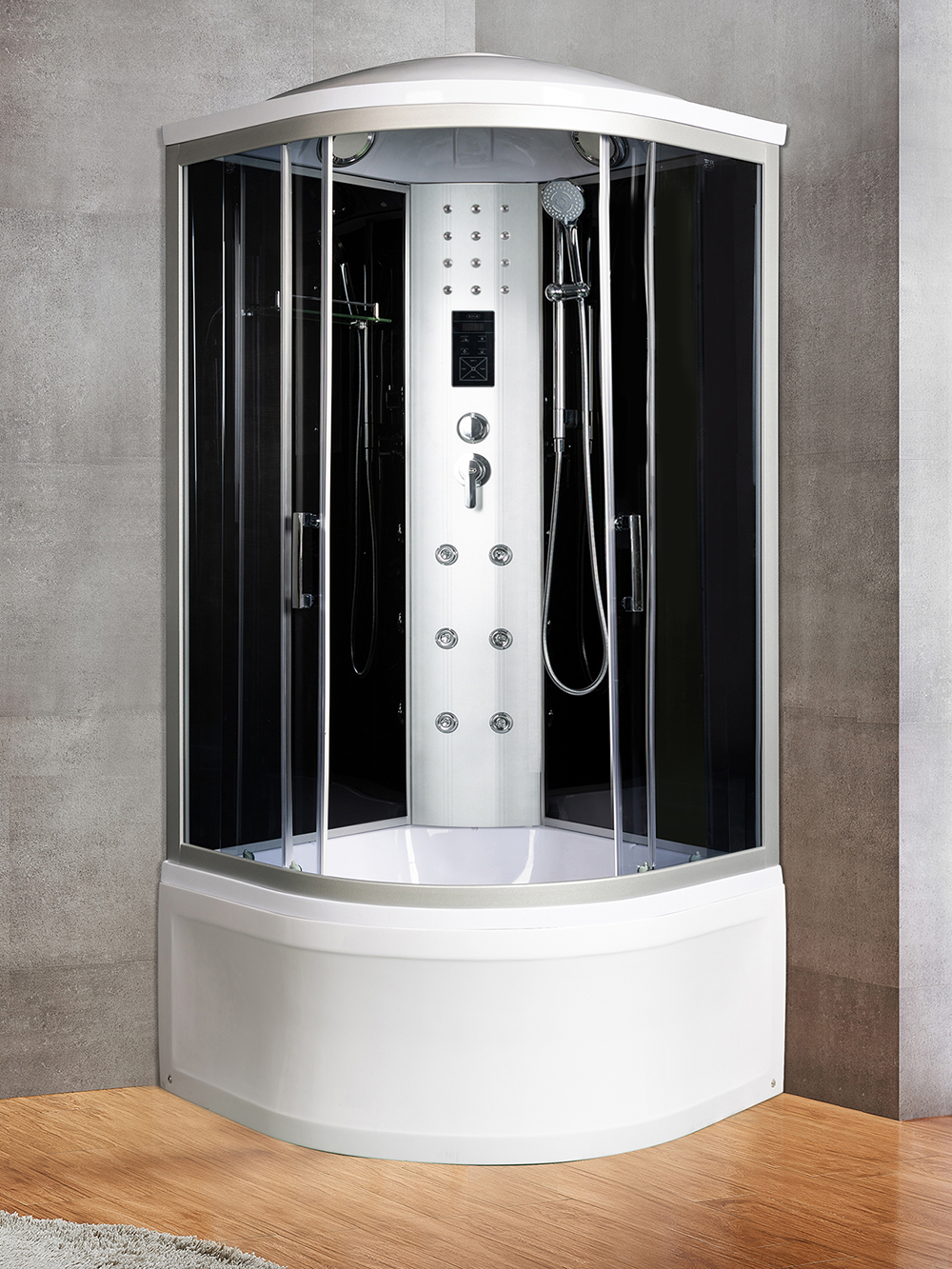 | Комплектация | сиденье||сифон||Вентилятор||смеситель||крыша||поддон WEMOR||полочка||верхний душ||верхний свет||динамик||центральная стойка||пульт управления||радио||г/м форсунки||штанга||ручной душ||телефон |