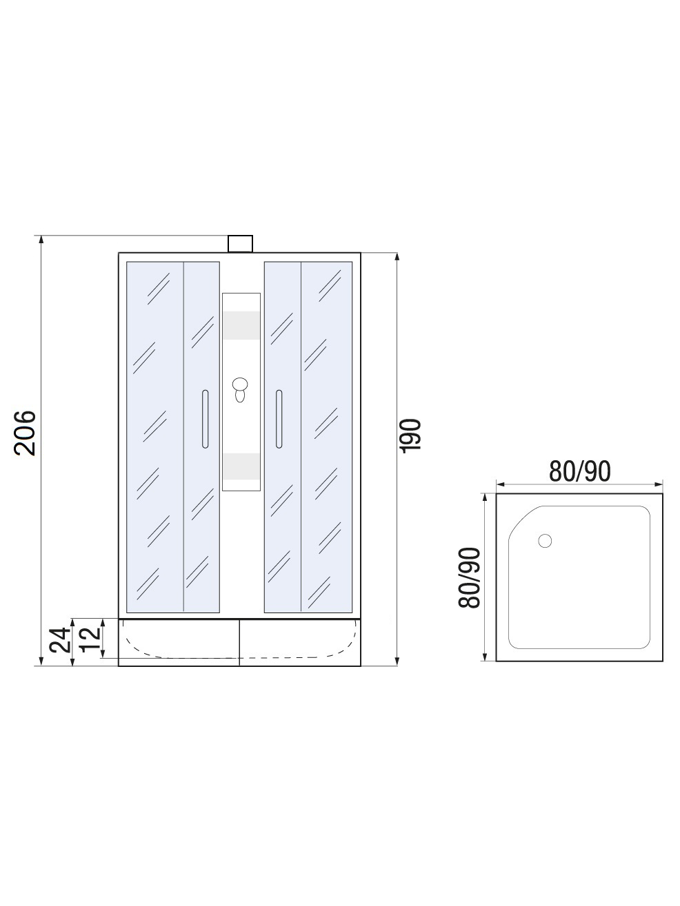 | Комплектация | сифон||смеситель||поддон WEMOR||полочка||центральная стойка||ручной душ||без крыши||держатель для душа |
