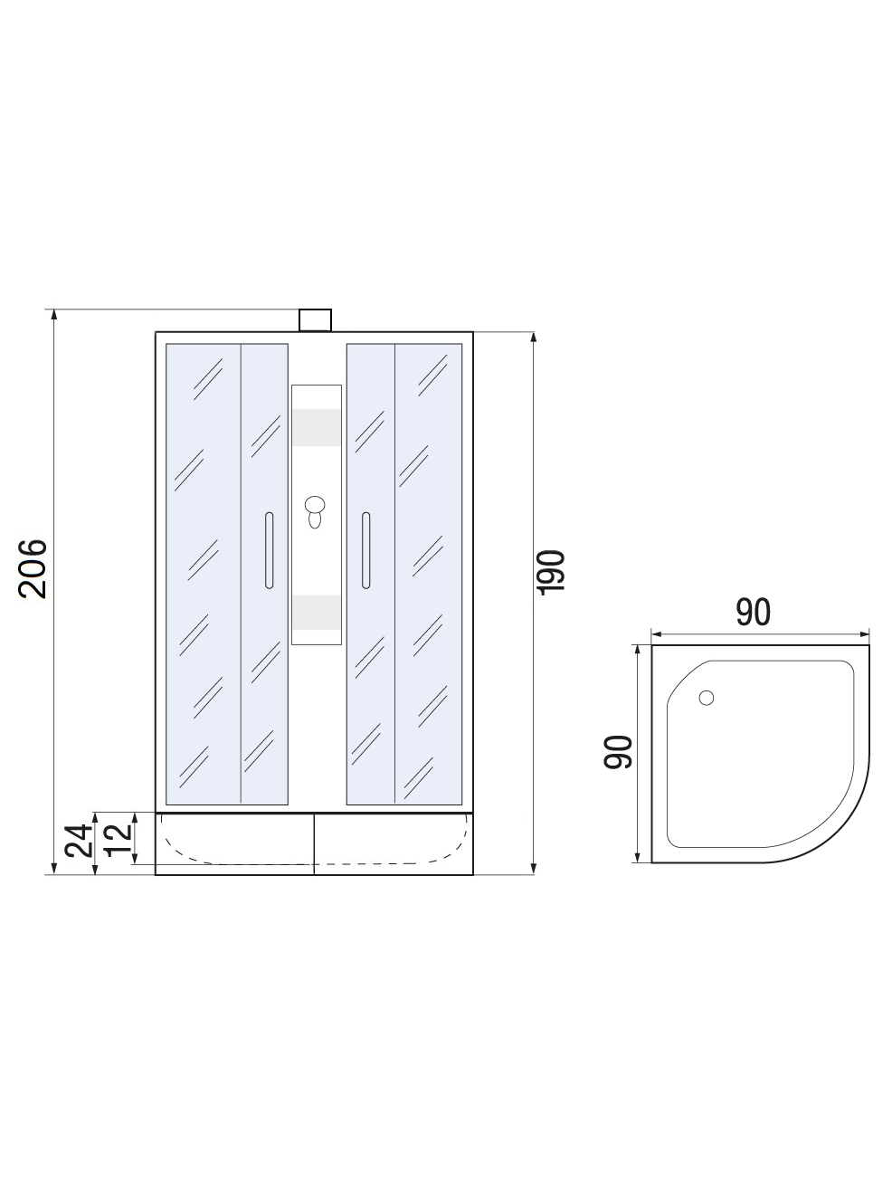 | Комплектация | сиденье||сифон||смеситель||поддон WEMOR||штанга||ручной душ||без крыши||полка 2 шт |