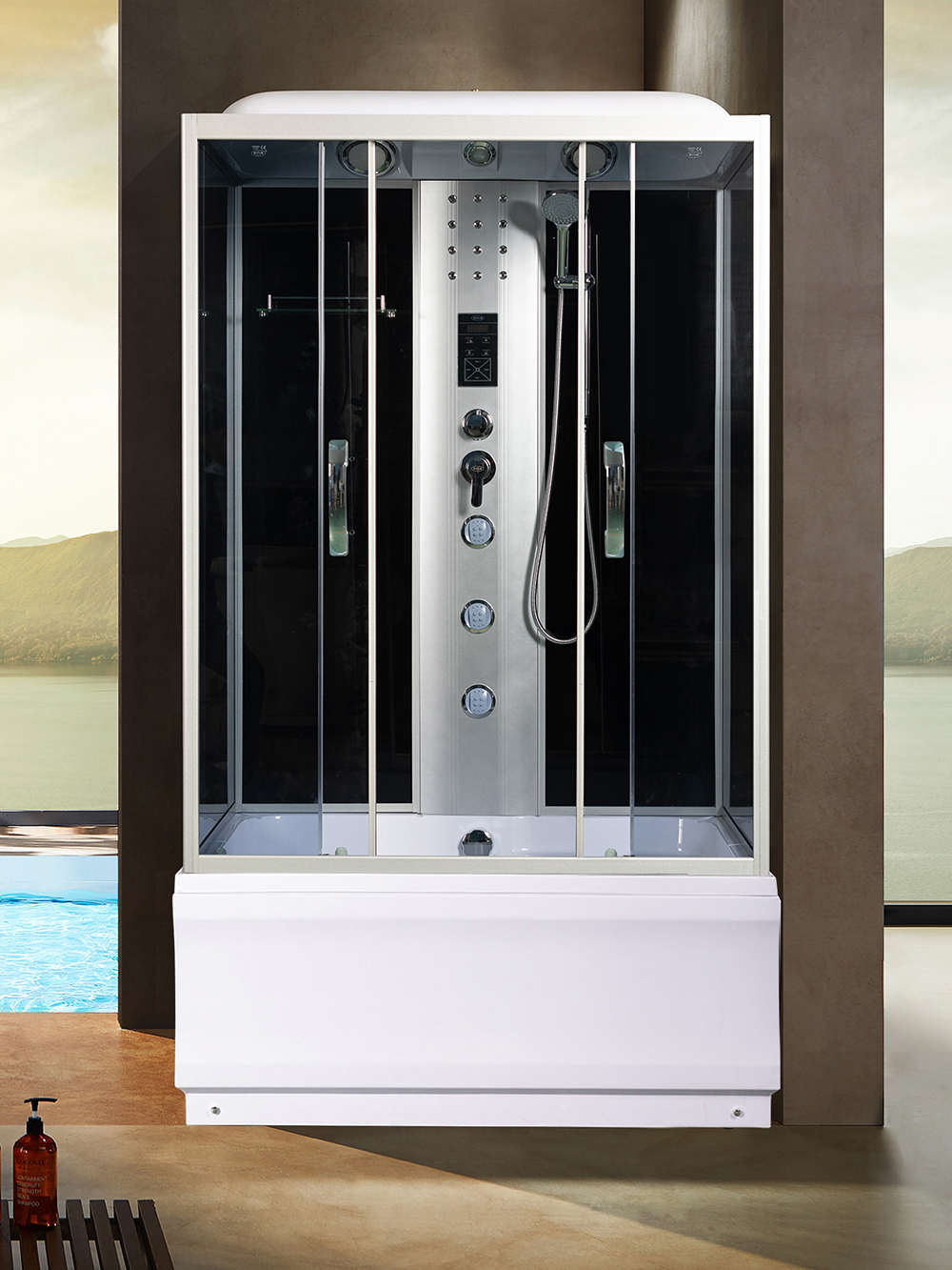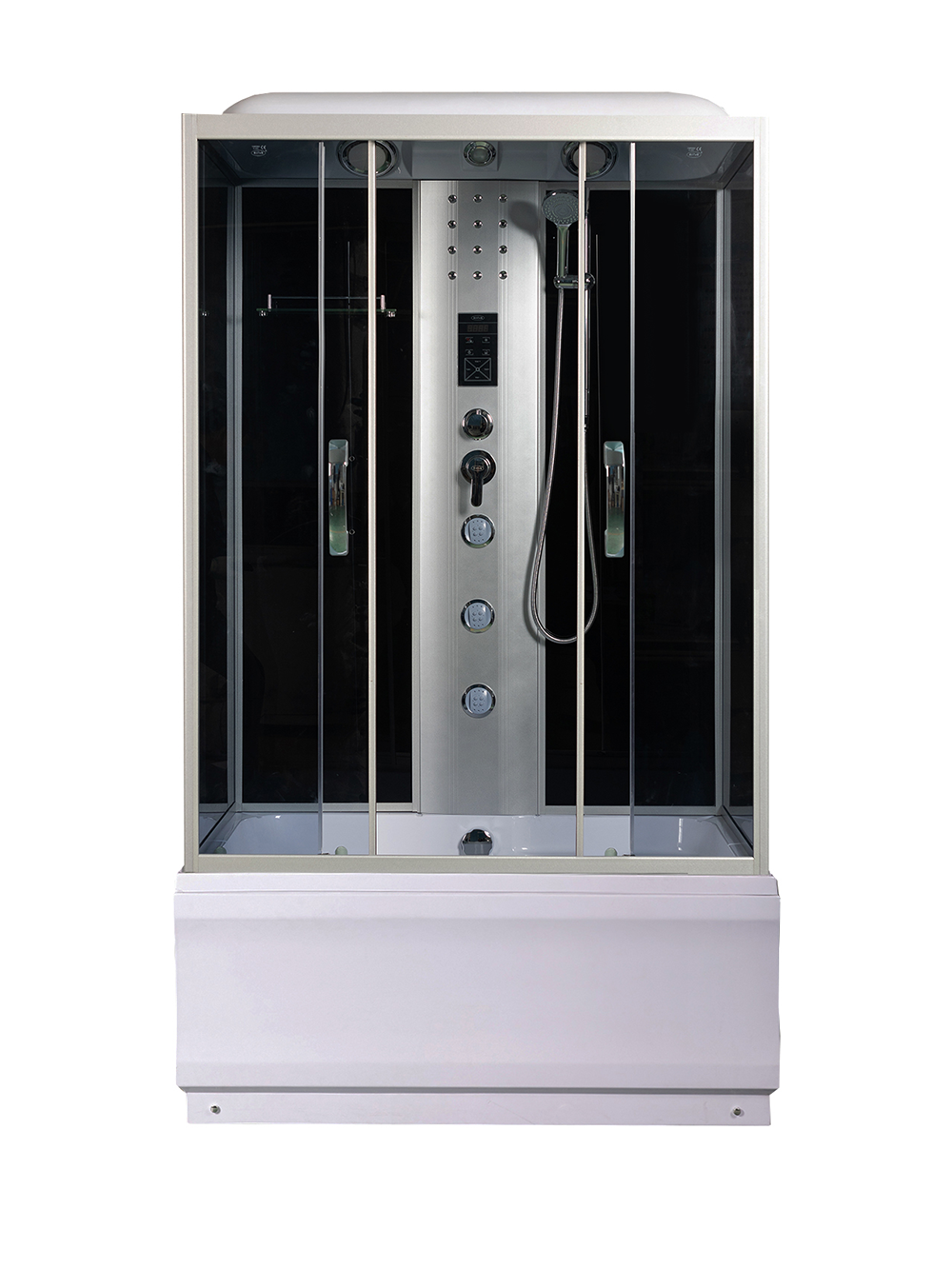| Комплектация | сиденье||сифон||Вентилятор||смеситель||крыша||поддон WEMOR||полочка||верхний душ||верхний свет||динамик||центральная стойка||пульт управления||радио||г/м форсунки||штанга||ручной душ||лунный свет |