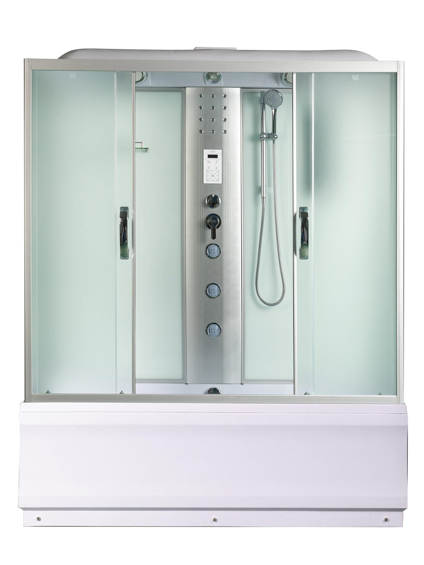 | Комплектация | сиденье||сифон||Вентилятор||смеситель||крыша||поддон WEMOR||полочка||верхний душ||верхний свет||динамик||центральная стойка||пульт управления||радио||г/м форсунки||штанга||ручной душ||лунный свет |