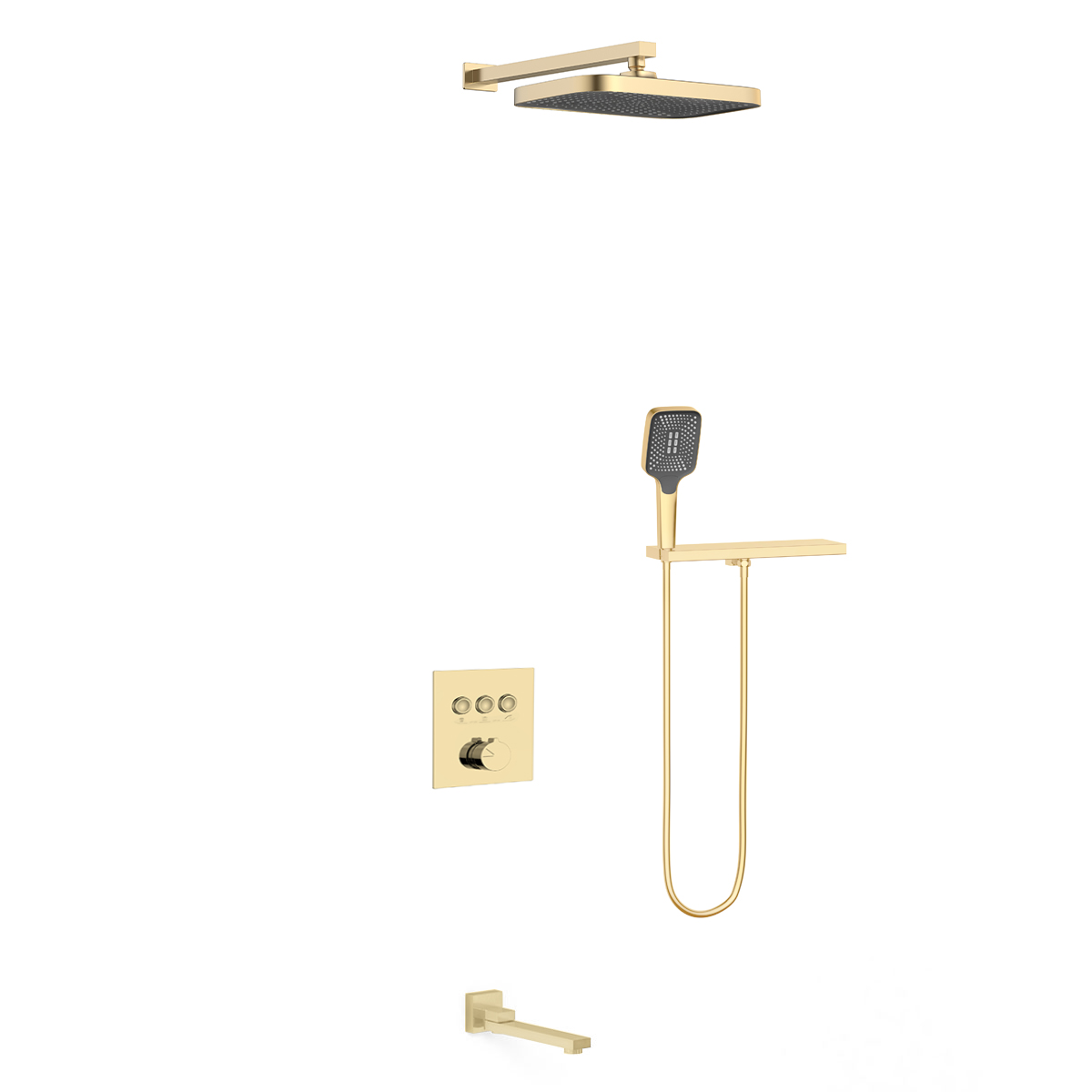 | Комплектация | Верхний душ, полка с изливом и держателем ручного душа, ручной душ, смеситель со встраиваемой частью, излив |