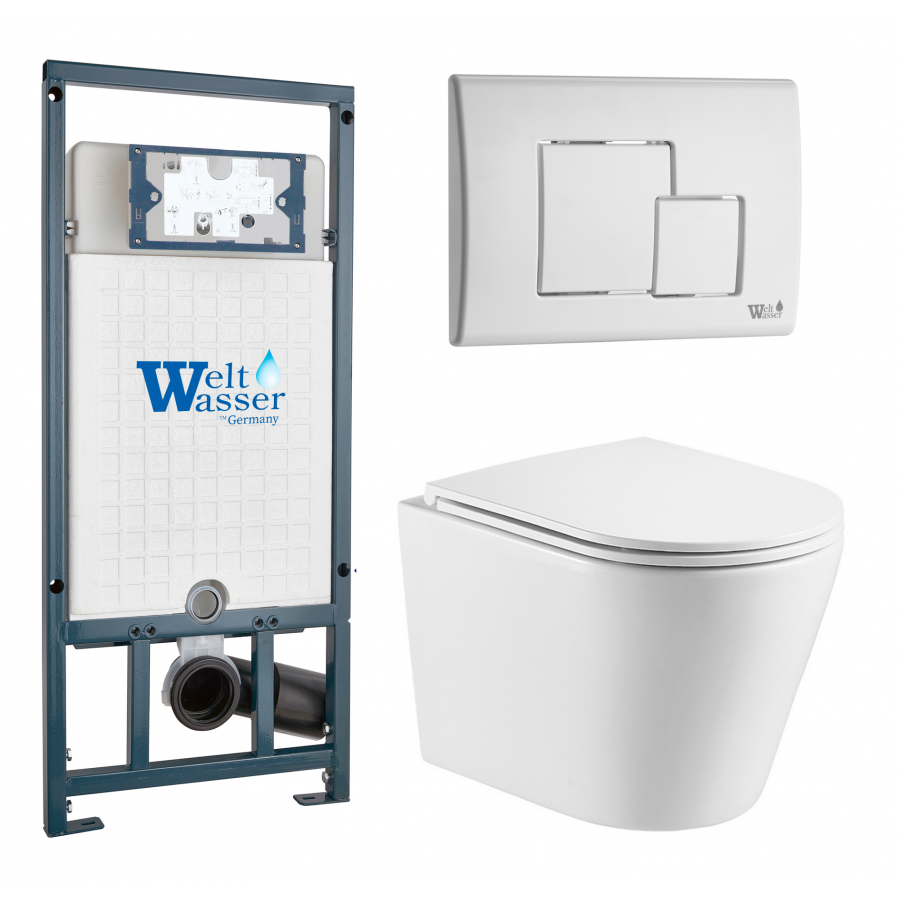 —Комплект Weltwasser 10000011518 подвесной унитаз Salzbach 043 GL-WT + инсталляция Marberg 507 + кнопка MAR 507 SE GL-WT