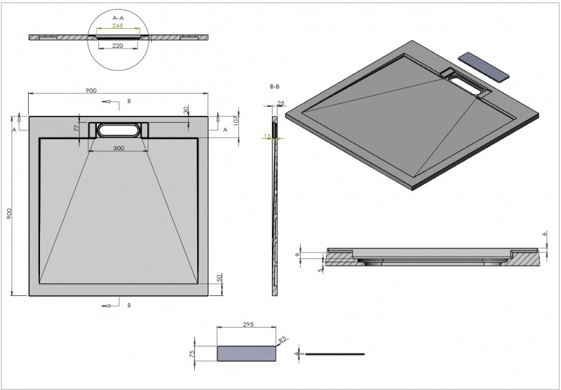 | Комплектация | Поддон из искуственного камня, крышка слива из искуственного камня в цвет и материал поддона (сифон приобретается отдельно) |